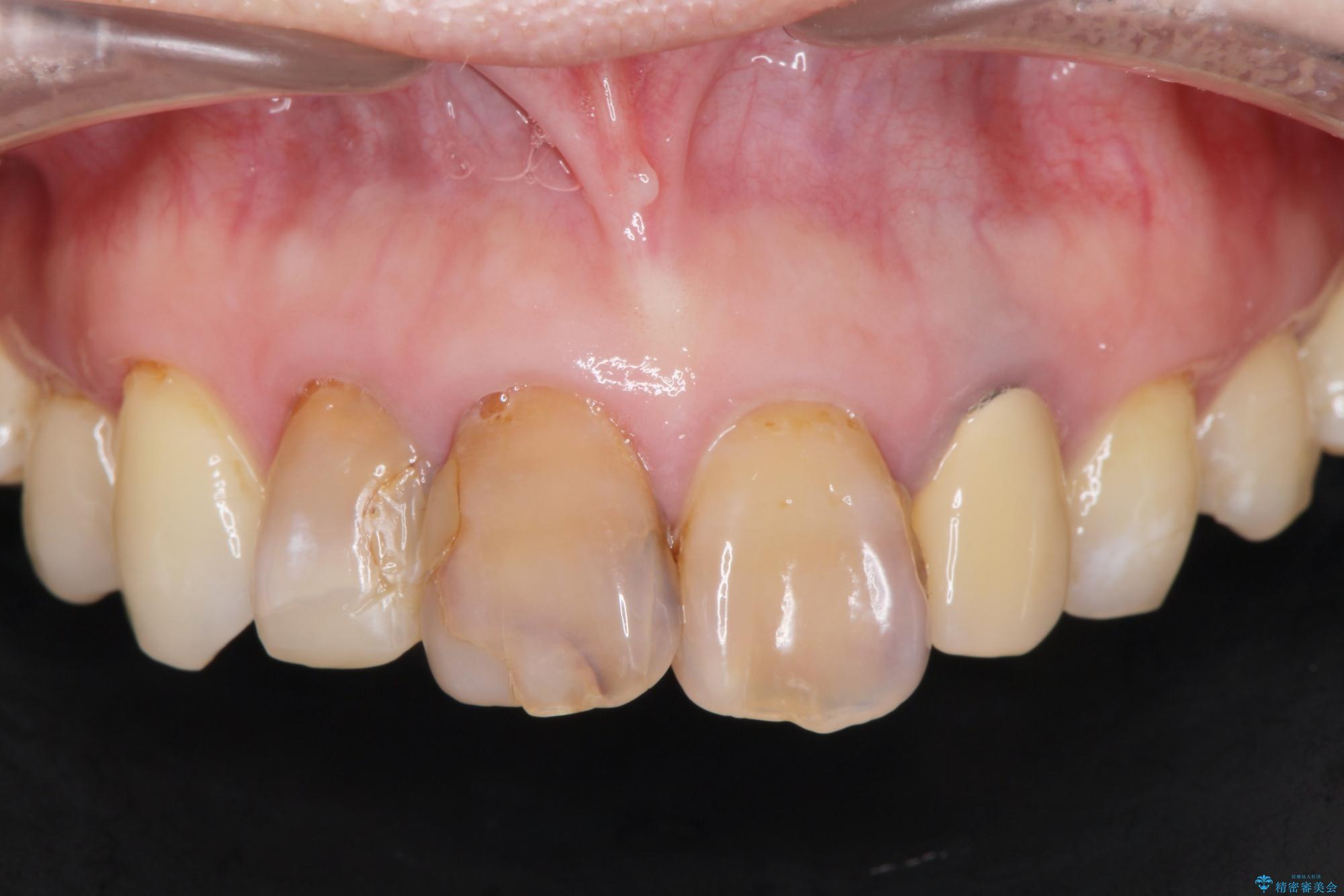 前歯の変色、審美障害の改善を主訴にご来院されました。