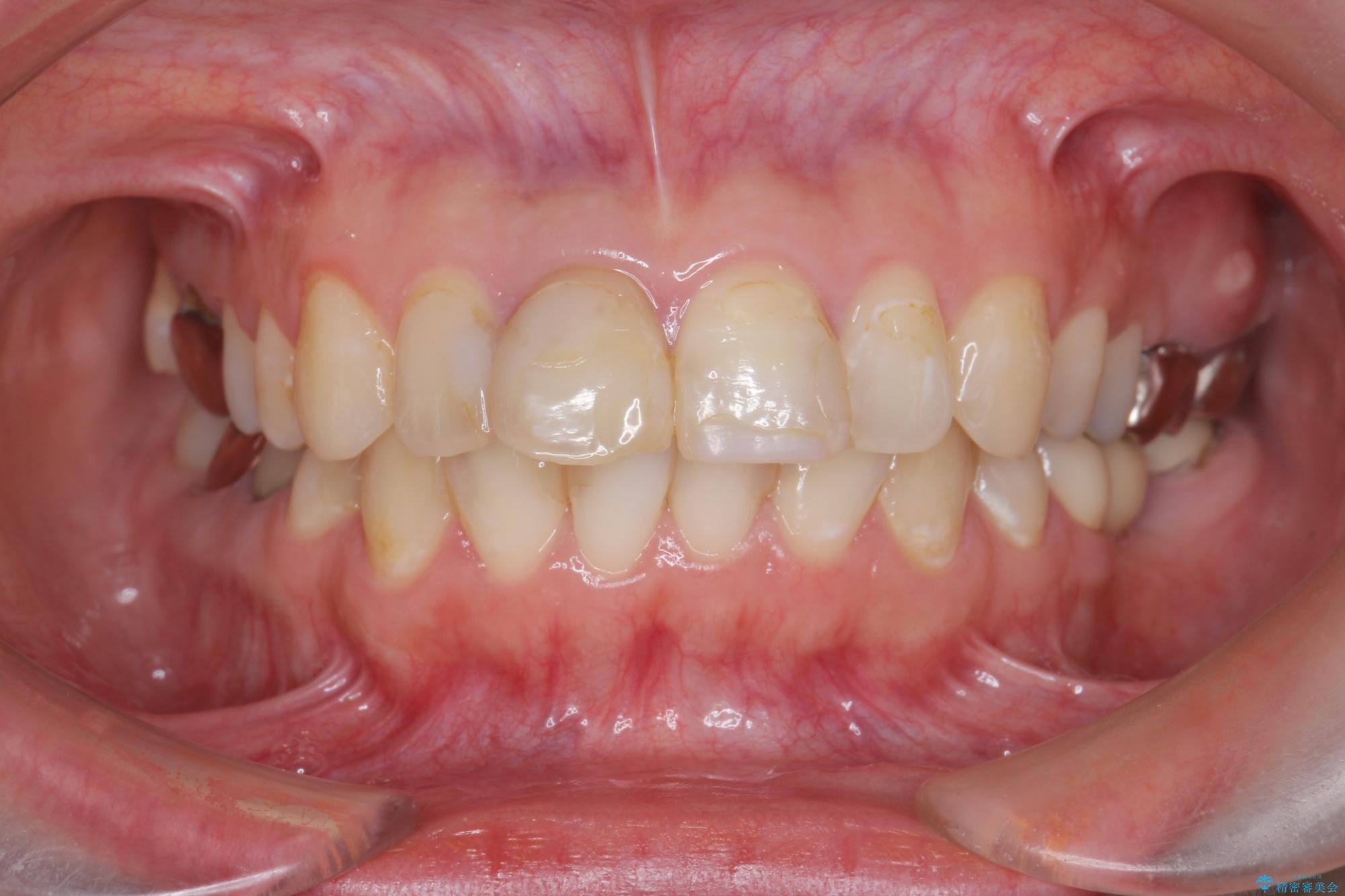 幼少期のジュースが原因で多発した虫歯をレジンで治療されていましたが、前歯の見た目をきれいにしたいとご来院されか患者様です。