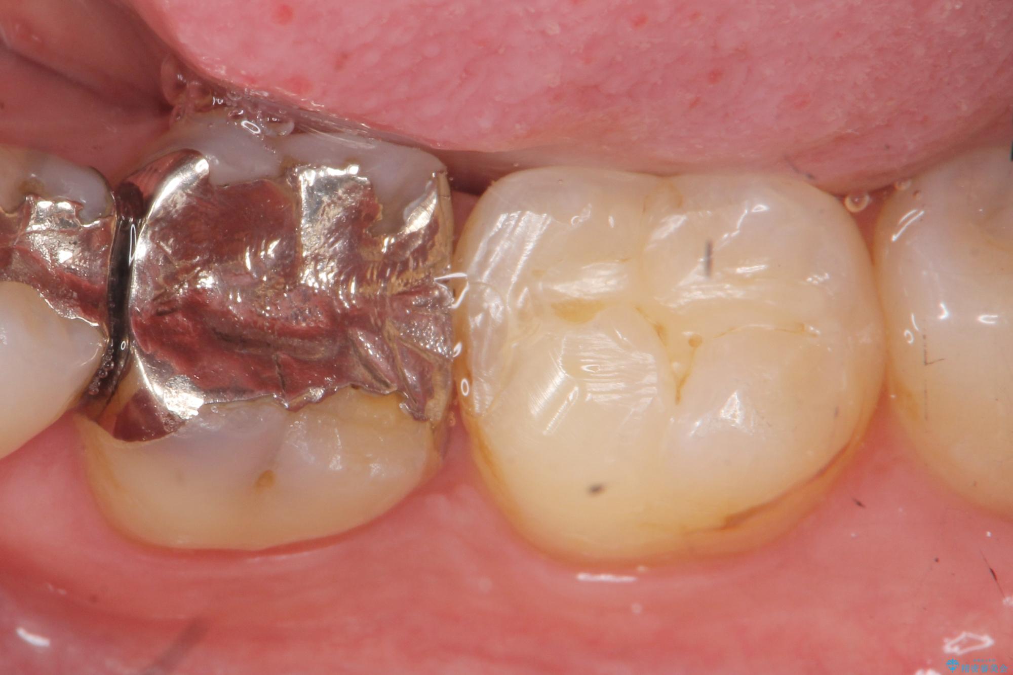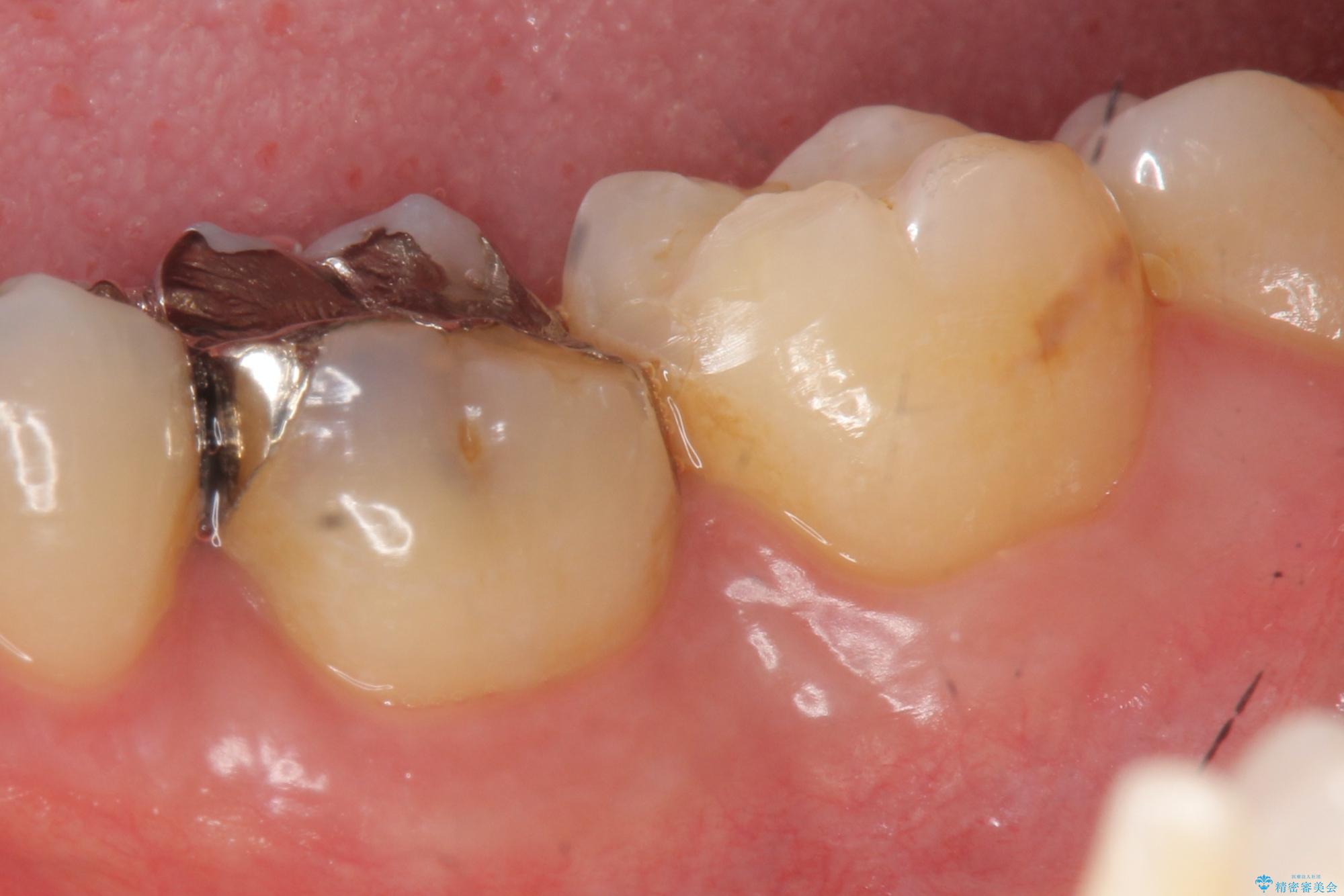 銀歯の適合や形態不良により、食べ物が非常に挟まりやすく、虫歯の再発も銀歯の下に認められる状態でした。