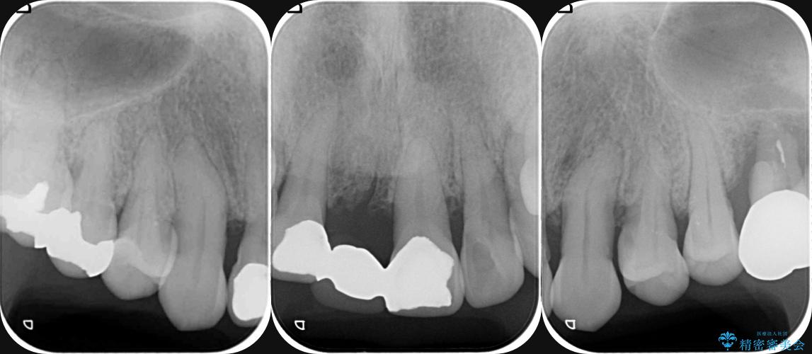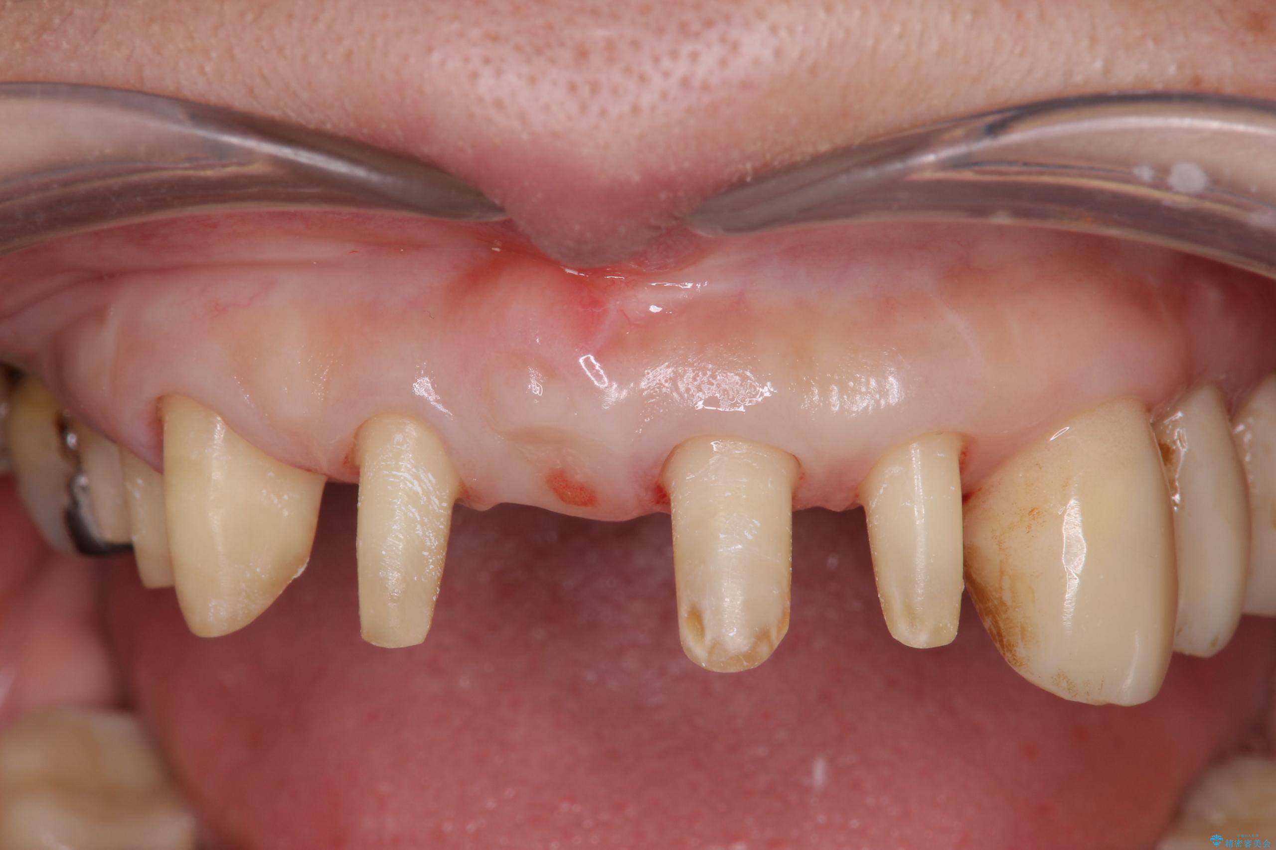 歯を今後残し、歯周病の状態を改善するため、歯槽骨の再生治療をおこなったのち、歯周ポケットの除去、セラミックブリッジの製作を行う治療計画を実行していきます。