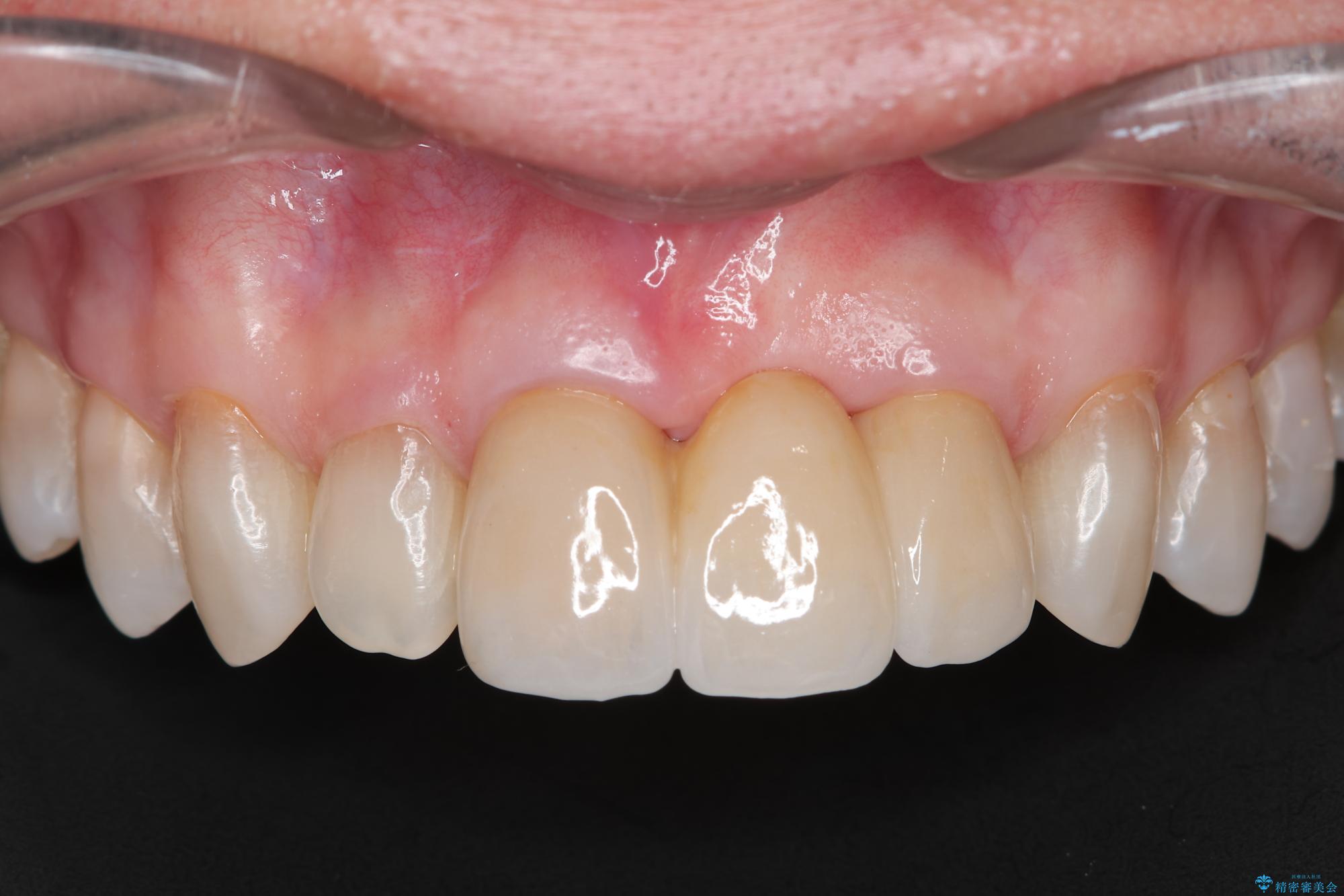歯肉のボリュームはしっかりと改善し、色調にも優れた審美的なジルコニアセラミックブリッジを装着することができました。