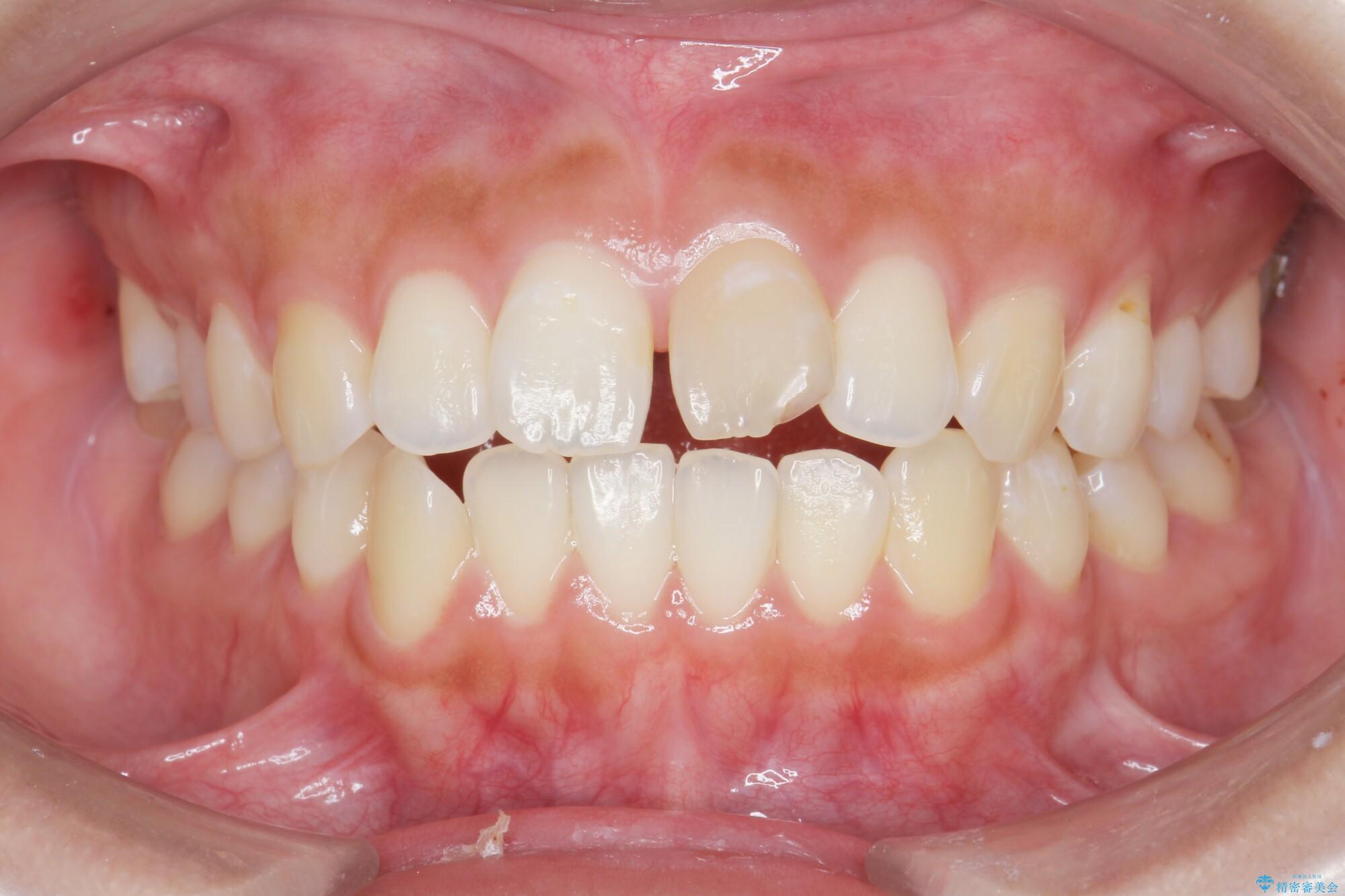 噛まない前歯と捻じれてしまった歯を改善したいと、矯正治療を希望された患者様です。