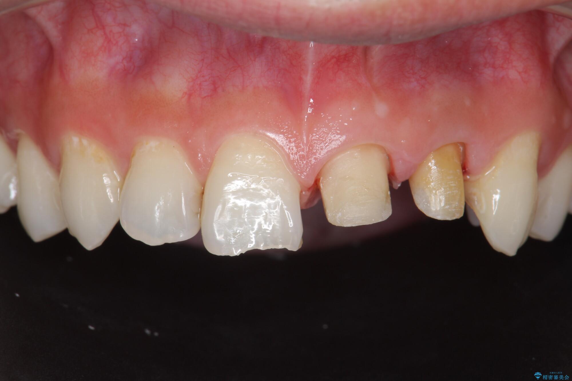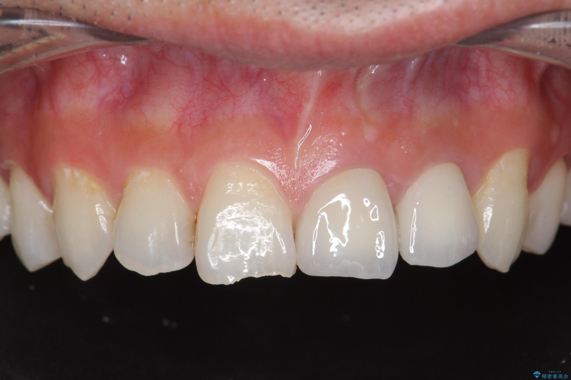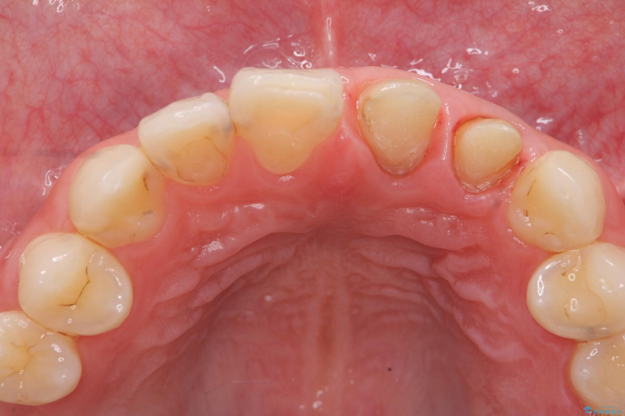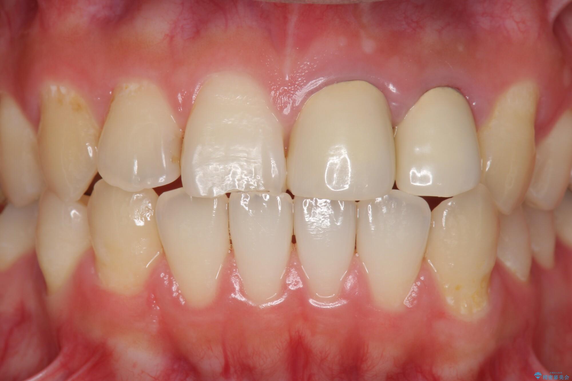 前歯を保険適用のクラウンで治療したが、色味や歯ぐきの黒ずみが気になるとご来院されました。