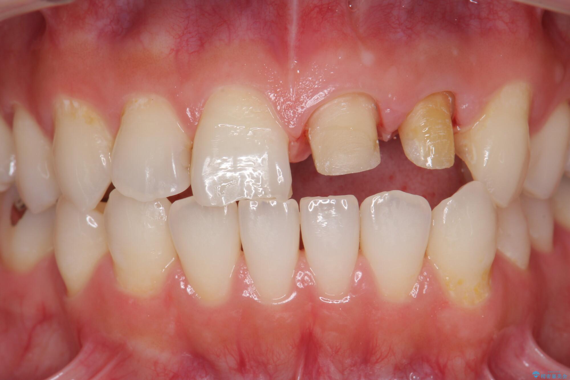 まず、クラウンを除去し仮歯で周囲の歯ぐきの状態を整えます。